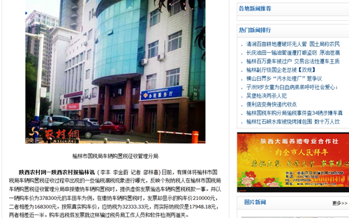 8月20日,本網(wǎng)《榆林國稅車購分局偷稅事件已查34輛涉嫌車 真相仍在調(diào)查》一則報道中,對榆林市國稅局車輛購置稅征收過程中出現(xiàn)的一些偷稅漏稅現(xiàn)象進行曝光,對于個別納稅人反映在榆林申報繳納車輛購置稅時,“被提供”虛假發(fā)票偷逃車輛購置稅稅款一事。當時車購分局相關(guān)領(lǐng)導稱已將涉嫌的34輛車全部移交到市稽查局和榆林市經(jīng)偵支隊來展開調(diào)查工作,并告知暫時給予分局負主體責任的一個局長、兩個副局長給予了停職處理。