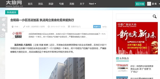 對(duì)合陽(yáng)縣德賢錦城小區(qū)違法加蓋建筑的查處和最終處理結(jié)果本報(bào)將繼續(xù)予以關(guān)注!(記者 張震 楊勇)