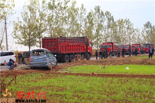 據(jù)村口目擊者稱,五菱宏光車輛上一家五口當(dāng)時(shí)正開(kāi)車由東向西行駛,準(zhǔn)備去西安,在行駛至東環(huán)路程趙村和岳家莊十字時(shí)被一輛由北向南的拉煤車攔腰撞上。由于拉煤車車速過(guò)快,來(lái)不及剎車,小車被拉煤車“推”著向前行駛了七八米,最后在路邊田地里才停下來(lái)。拉煤車主要撞擊的是小車的后面,前排司機(jī)和妻子均受傷,后排座位上司機(jī)的母親和外婆當(dāng)場(chǎng)死亡,現(xiàn)場(chǎng)慘不忍睹。