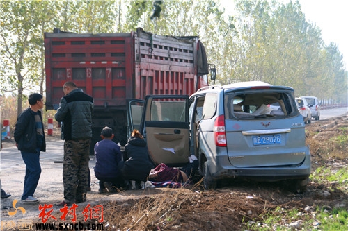 10月28日上午九時(shí)許,澄城縣新建東環(huán)路程趙村和岳家莊交界十字路口發(fā)生一起車禍。一輛拉煤車和一輛五菱宏光車輛相撞,車禍致使五菱宏光車內(nèi)兩死三傷,大貨車司機(jī)無(wú)恙。據(jù)了解,車禍原因是由于該十字路口沒(méi)有交通標(biāo)示,也沒(méi)有減速帶等交通提示,肇事雙方車速太快導(dǎo)致。