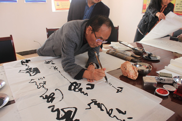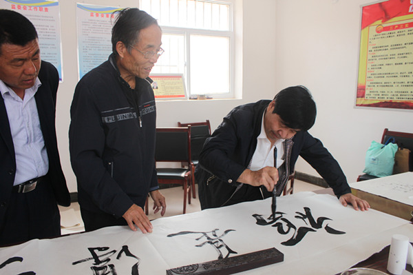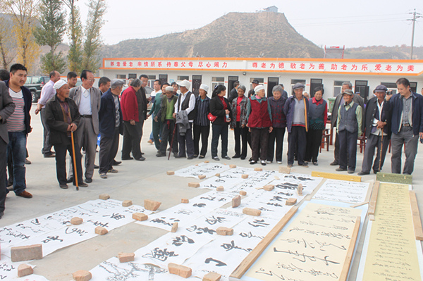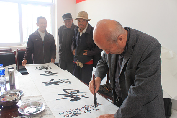 活動(dòng)現(xiàn)場(chǎng),陜西省新聞書(shū)畫(huà)家協(xié)會(huì)主席陳五季、副主席馬師雄、特別顧問(wèn)李少頗以及畫(huà)家于振蓮等十余位知名書(shū)畫(huà)家不顧條件簡(jiǎn)陋,紛紛揮毫潑墨,為老人們創(chuàng)作了30余幅書(shū)畫(huà)作品。據(jù)了解,古塔鎮(zhèn)張大溝社區(qū)大部分年輕人外出務(wù)工,空巢老人較多,為解決獨(dú)居老人的生活困難,今年,榆陽(yáng)區(qū)老齡辦出資12萬(wàn),張大溝社區(qū)企業(yè)家許琪出資80余萬(wàn)為社區(qū)修建了老年幸福院,目前該院各項(xiàng)服務(wù)設(shè)施已陸續(xù)完工,預(yù)計(jì)于明年三月投入使用。(記者 霍海澎)