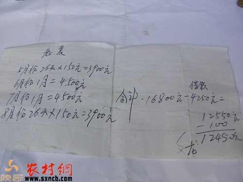 10月14日,記者在乾縣見(jiàn)到了袁明起和他女兒的女婿周彥榮。袁明起說(shuō),從去年5月份開(kāi)始,他在溝揚(yáng)村磚窯給老板燒窯,當(dāng)時(shí)窯老板說(shuō)給他一個(gè)月4500元,一個(gè)月一開(kāi)工資,他在窯上從5月份干到了8月份,干了4個(gè)月,窯老板沒(méi)有給他發(fā)工資。