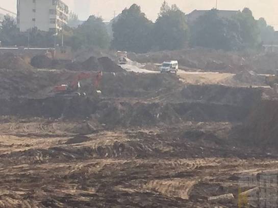事發(fā)后記者來到了出事工地西側(cè)的一處高點,從這里看過去,工地里的情況一目了然。