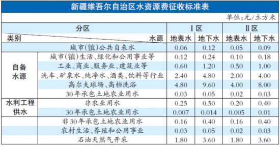 15日,自治區(qū)發(fā)展改革委發(fā)布了《關(guān)于調(diào)整我區(qū)水資源費(fèi)征收標(biāo)準(zhǔn)有關(guān)問題的通知》,自2016年1月1日起執(zhí)行新的水資源費(fèi)征收標(biāo)準(zhǔn)。標(biāo)準(zhǔn)主要分為城市(鎮(zhèn))公共自來水、非農(nóng)業(yè)用水、農(nóng)業(yè)灌溉、石油天然氣開采取用水以及農(nóng)村生活、養(yǎng)殖、公共事業(yè)取用水,并對各類水資源費(fèi)征收標(biāo)準(zhǔn)做了調(diào)整(見下表)。