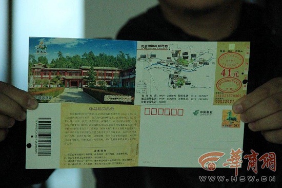 華商報記者了解,目前,藥王山景區(qū)的門票有三種,一種的針對本地人優(yōu)惠的41元一張的,一種是打折優(yōu)惠的61元一張的,一種是81元一張的,都含有1元郵資費。對此,藥王山景區(qū)管理局一位管理者解釋說,按照國家相關(guān)規(guī)定,4A級景區(qū)必須具備郵資明信片形式的門票,從2013年起,藥王山景區(qū)就開始采用以藥王山孫思邈景點圖案制作郵資片門票,他還告訴華商報記者,這一做法當時已經(jīng)物價部門的批復(fù)。