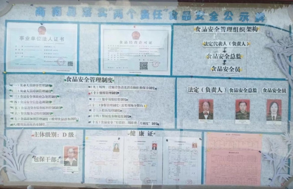 一是及時(shí)公示了事業(yè)單位法人證書(shū)、食品經(jīng)營(yíng)許可證、食堂主體級(jí)別、事業(yè)單位法人、食品安全總監(jiān)、食品安全管理員、食堂安全監(jiān)管人員、包保干部、管理人員及操作人員的健康證、食品安全管理各項(xiàng)工作制度等信息,隨時(shí)接受各級(jí)領(lǐng)導(dǎo)的檢查和廣大群眾的監(jiān)督。