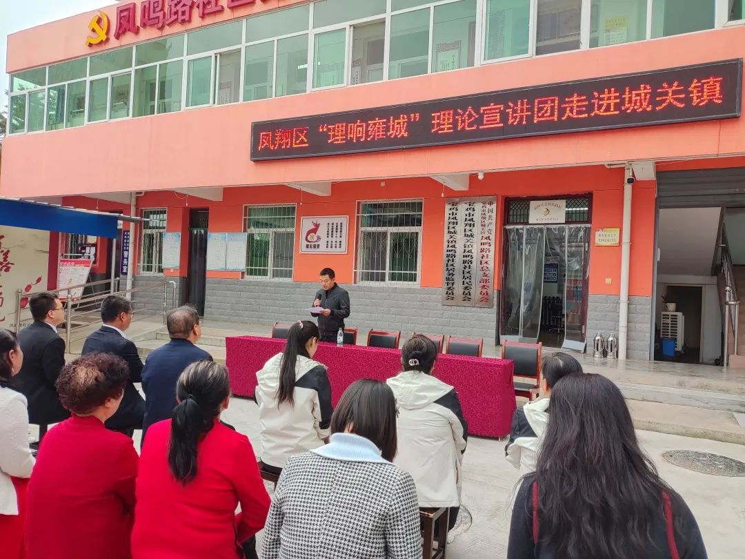 為推動(dòng)黨的創(chuàng)新理論深入人心,同時(shí),推進(jìn)移風(fēng)易俗,弘揚(yáng)文明新風(fēng),提高群眾對(duì)民生政策的知曉度,10月17日,“理響雍城”理論宣講團(tuán)走進(jìn)城關(guān)鎮(zhèn),為轄區(qū)群眾帶來了一場內(nèi)容豐富、意義深刻的宣講活動(dòng)。區(qū)委黨史研究室副主任、紅色黨史宣講隊(duì)隊(duì)長何篤勤,城關(guān)鎮(zhèn)人大主席張軍財(cái)參加活動(dòng)。
