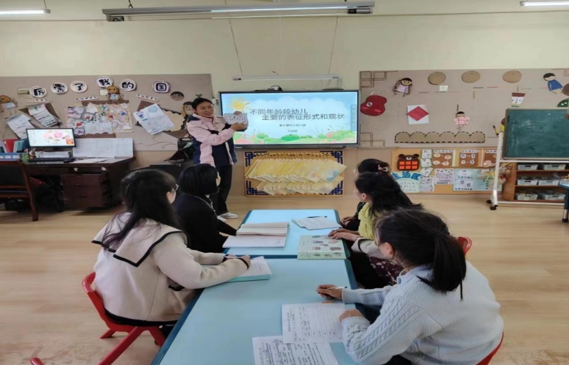 培訓(xùn)立足《評估指南》相關(guān)內(nèi)容,從破除“唯繪畫為表征”的表達(dá)方式、“事事需表征”的教育形式、以“留痕”為追求的評價手段,轉(zhuǎn)變?yōu)閯?chuàng)立多元表征方式、建立高質(zhì)量的師幼互動、樹立正確激勵導(dǎo)向。老師們以交流研討的方式,聚焦問題開啟本次教研活動。教師們各抒己見,進行沉浸式交流,分享其所思所想。