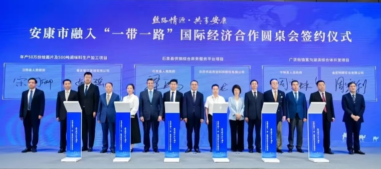 ▲安康市融入“一帶一路”國際經(jīng)濟合作圓桌會簽約儀式