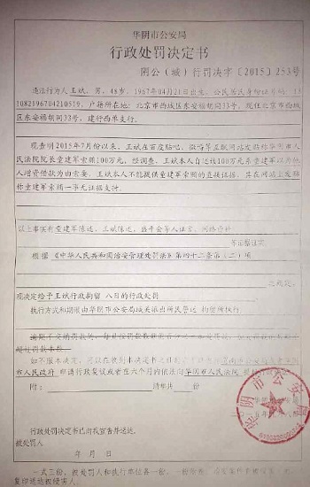 9月8日,華陰市公安局根據(jù)《治安管理處罰法》第24條第2款做出決定:給予王某行政拘留8日行政處罰。