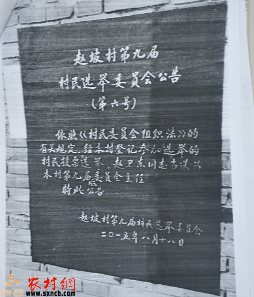 他證實(shí)趙家坡村是在今年3月6日成立選委會(huì),3月10日給辦事處打的報(bào)告,原定4月3日正式選舉,公告都貼了。當(dāng)時(shí)辦事處指導(dǎo)小組下命令停止選舉,理由是管委會(huì)不讓,具體選時(shí)通知,就這樣一直拖到了8月份,具體采取直選方式。出現(xiàn)現(xiàn)在的情況,他認(rèn)為在意料之中,主要是一些人沒有達(dá)到自己的目的才搞的這些名堂。