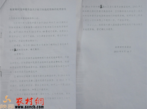 趙家坡村選委會(huì)關(guān)于趙衛(wèi)東選民資格的處理意見