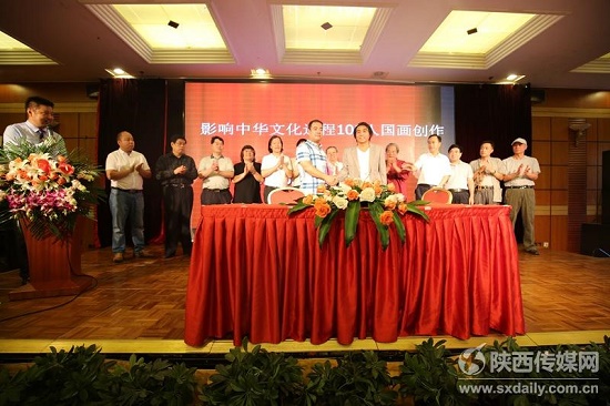 9月9日,由全國(guó)老齡委信息中國(guó)文化藝術(shù)研究院、西安力邦廣告?zhèn)髅絺鞑ビ邢薰景l(fā)起和出資,由陜西國(guó)畫(huà)院承辦,著名畫(huà)家王志平創(chuàng)作,影響中國(guó)歷史文化名人100人中國(guó)畫(huà)簽約儀式在西安舉行。這是企業(yè)和文化結(jié)合的一次有益探索,是落實(shí)省委文化強(qiáng)者戰(zhàn)略的具體行動(dòng)。