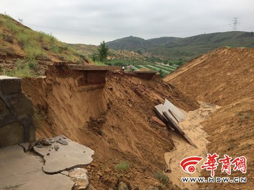 今年7月底的一場大雨過后,緊鄰榆佳高速的榆林市榆陽區(qū)大河塔鎮(zhèn)暖水溝村的村道因榆佳高速的排水渠塌陷沖刷路基,導(dǎo)致坍塌30余米,至今一個多月過去了,垮塌的村道仍無人處理,這不僅給村民出行造成了極大地不便,甚至讓該村的實體經(jīng)濟陷入癱瘓。