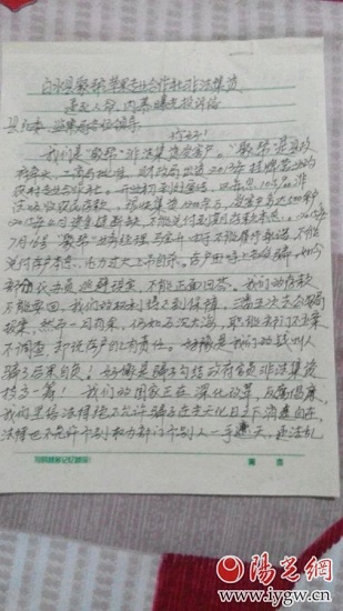 陜西省渭南市白水縣聚幫公司詐騙當(dāng)?shù)?00多農(nóng)民血汗錢千余萬,已鬧出人命,政府不聞不問,是辦事不力還是官商勾結(jié)不得而知。下面是農(nóng)民自發(fā)書寫的實(shí)名信,求轉(zhuǎn)發(fā)!求擴(kuò)散!相信世間仍有浩然正氣,還身心俱疲的農(nóng)民們一個(gè)公道。